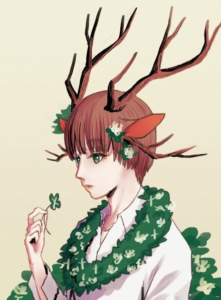 #美少年版深夜の真剣お絵描き60分1本勝負 テーマ「鹿の角、カッターシャツ」 花冠もらっても多分食べちゃう