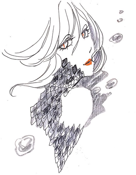 #Inktober #Inktober2019 day3:bait 「エサ、誘惑」 人魚みたいなイメージ〜ウロコ塗らない方がバランスよかったかも