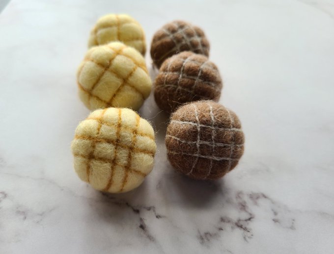こんにちは いつもありがとうございます 羊毛でメロンパンブローチとチョコメロンパンのブローチを作りました☺️ #ハンドメイド好きさんと繋がりたい #羊毛フェルトブローチ #羊毛メロンパンブローチ #羊毛チョコメロンパンブローチ #羊毛フェルト