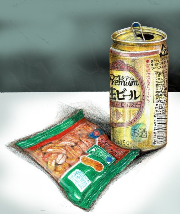 #色鉛筆画 #缶生ビール 缶生ビール🍺イケますね。 色鉛筆画2作目。 色鉛筆画にハマりそうです。