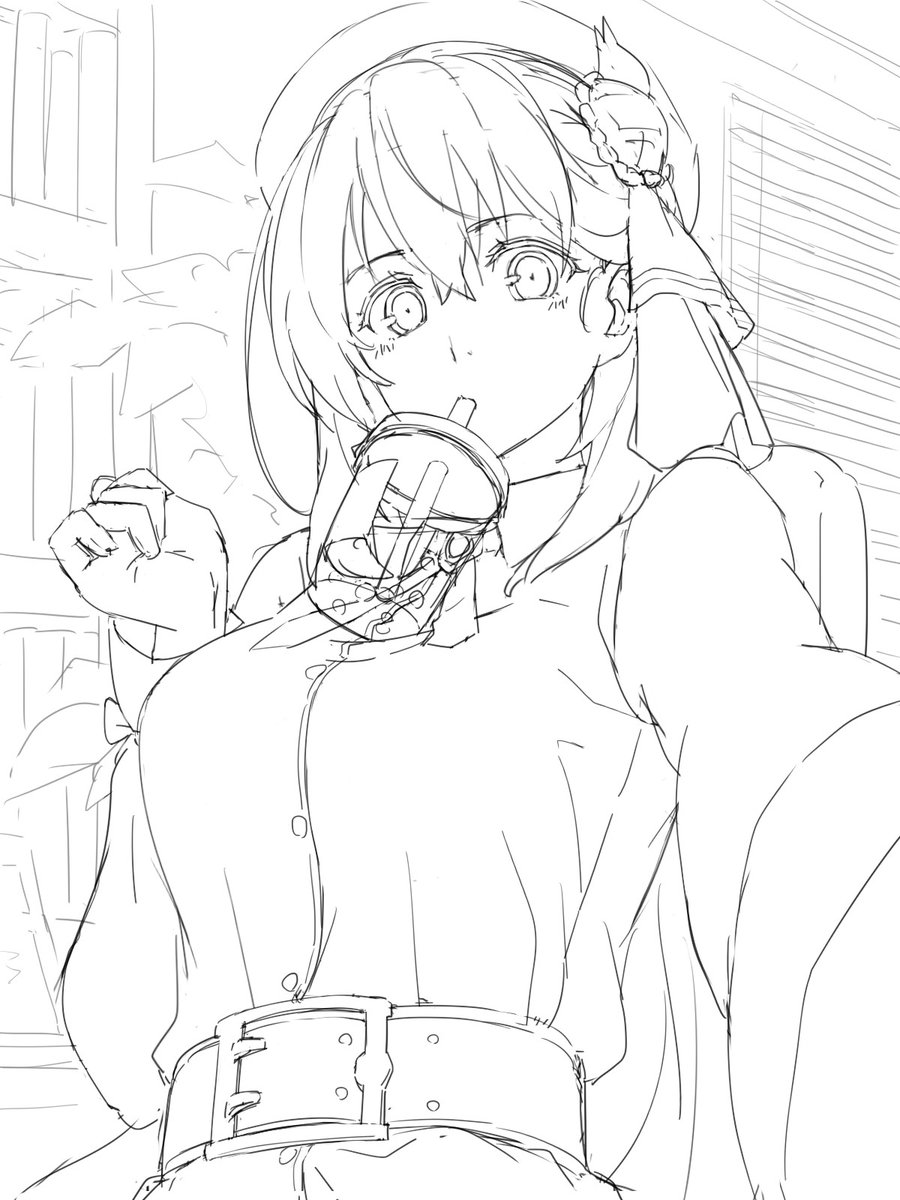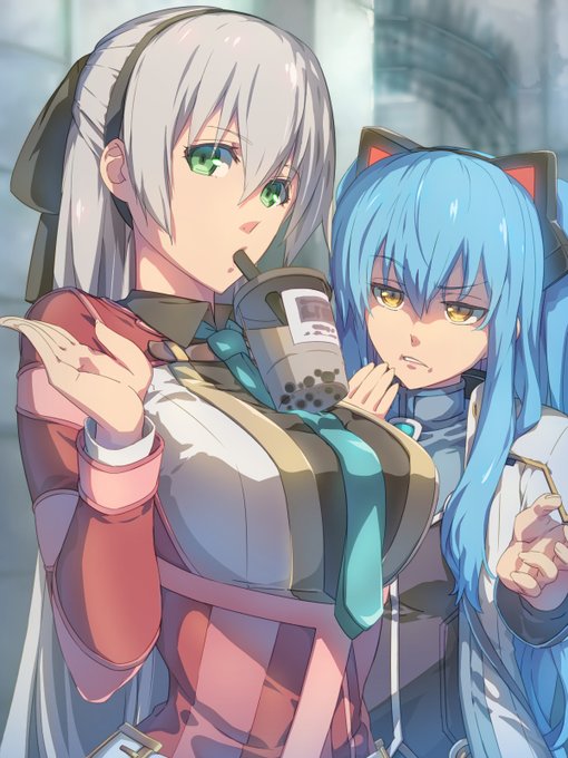 黎の軌跡Ⅱよりアニエスさんにタピオカを添えて。以前、そんなチャレンジが流行ったなぁ、と思い出して描いたらくがきを清書しました。アニエスさんならこのポーズはきっと余裕ですね :-D pixiv.net/artworks/10908…
