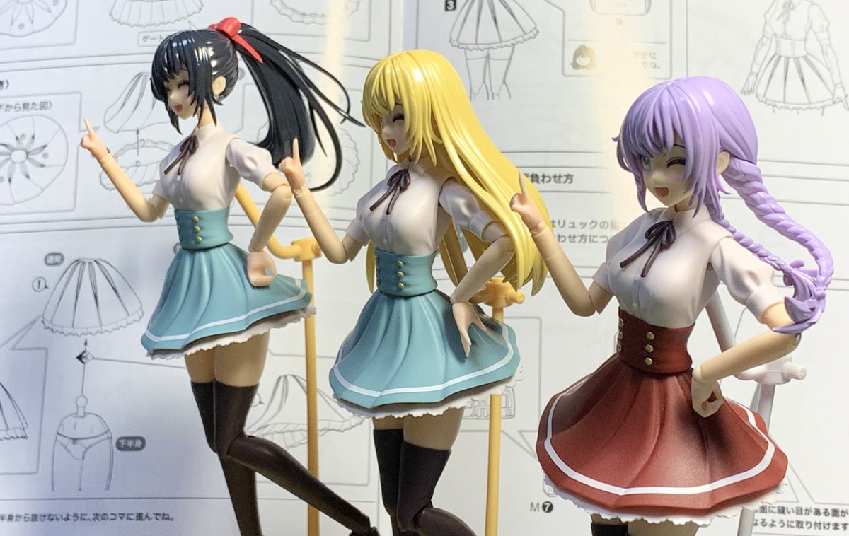 2 7 JKユニットRTK(リツカ)揃った(^^)。 ダンス好きらしいから同じポーズでライブっぽいポーズ。黒髪・金髪・紫ヘアーで髪だけエアブラシ塗装。 #創彩少女庭園 #創彩写真部 #コトブキヤ 22/01/03 22:18