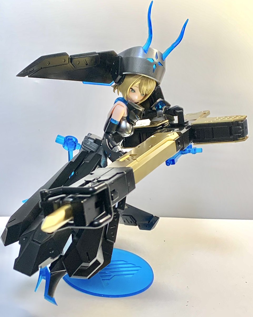 バレットナイツ“ウィドゥ”完成〜(^^)/! 静かに妖艶なイメージとアクロバティックで大きな武器のアンマッチがステキ(*´ω`*)。肌はそのままだけど全塗装の楽しさが分かってきた(・∀・)。 リプに続くσ(・∀・)σ #メガミデバイス #コトブキヤ