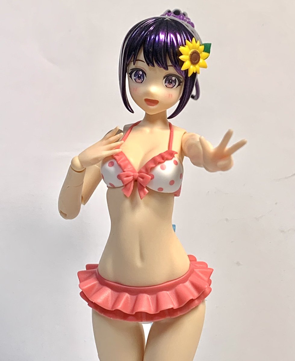 結城まどかたん水着verパチ組み完成〜(・∀・)。髪と花だけ目立つから塗ってみた。関節と合わせ目は意外と気にならずむしろめっちゃかわいいσ(・∀・)σ。 #創彩少女庭園 #創彩写真部