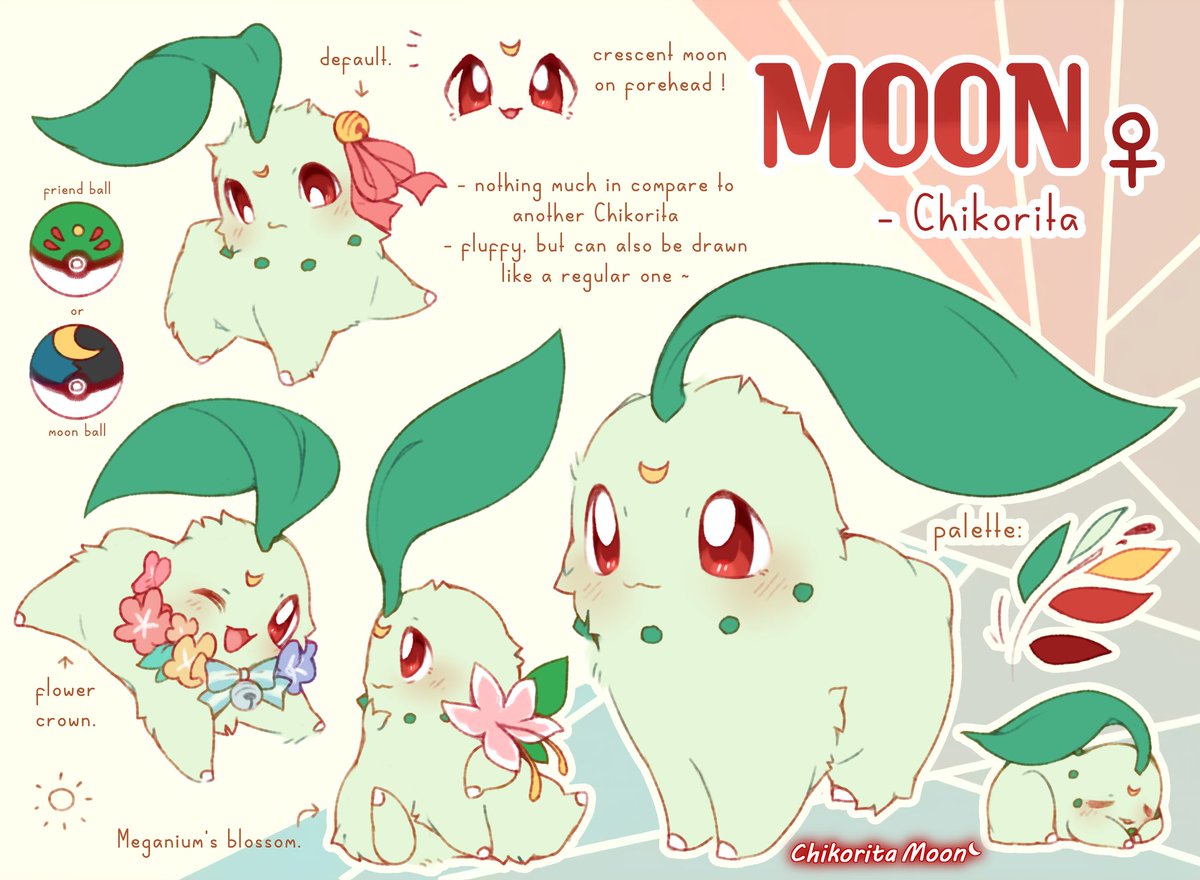 I actually went ahead, and finish a reference sheet for Chikorita's Day! This is my Pokésona, and my first OC ever, made waaaaay before the current one. I've been wanting to revive her for a long time, finally had the motivation to 💐✨