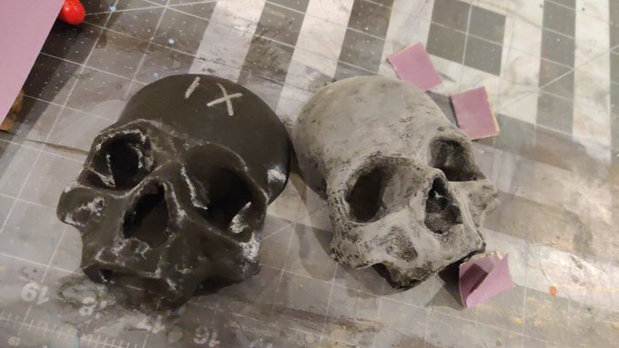 Working on sanding the skulls for our ninth house belts. #TheLockedTomb #cosplay