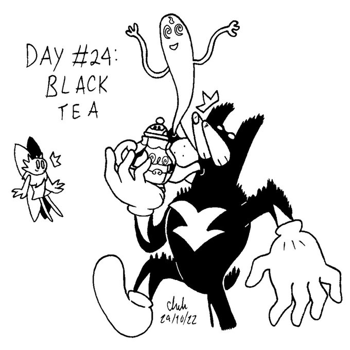 Inktober Day 24 - Black Tea Polteageist, the Black Tea Pokémon. Leaving leftover black tea unattended is asking for this Pokémon to come along and pour itself into it, turning the tea into a new Polteageist. Don't drink strange kettles please! #inktober #pokemon #polteageist