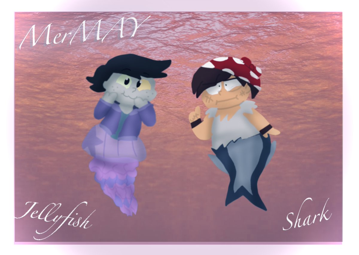Heard about the MerMAY challenge and I wanted to give it a go!! ❤️❤️❤️ Boss ID=Sea Angel Mermaid Cog!Slappy=Regular merman Drakey=Jellyfish merboy Rebell=Shark merboy (everyone vibin and then there’s Reb who is just like “wait wha-“ #mermay2021#Mermaid#toontown#mermay