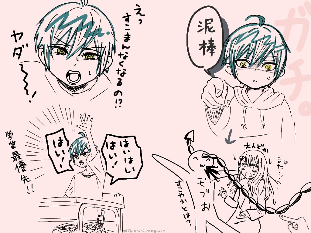 2 3 はぁ今日チェンソ更新ねぇなーと思ってたらいつの間にか描いてた落書き ⚠️パロ注意です(ナユタ) 人間に転生しのどかのとこに転がり込んだ子ダル 小3←こだわり 23/06/06 23:13