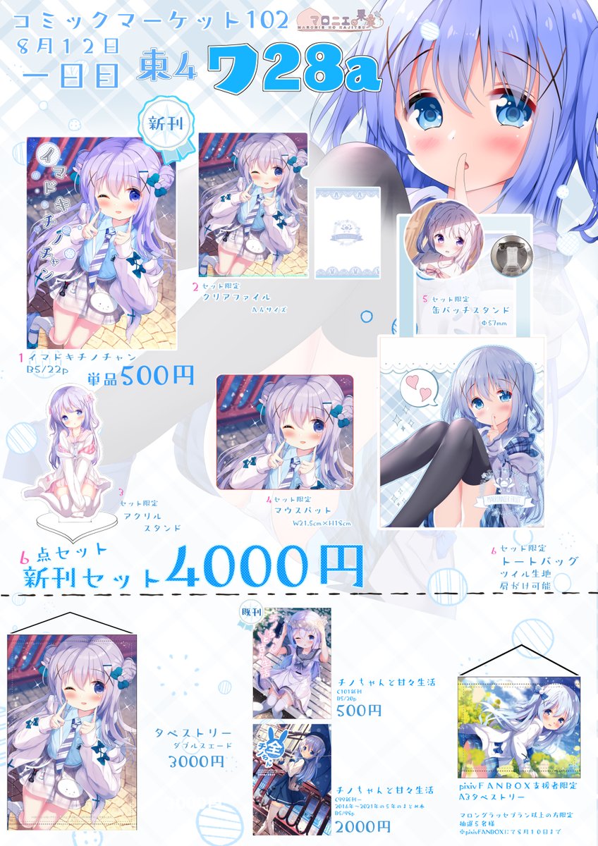 夏コミのお品書きです✨ 1日目 東4 【ワ 28a】 です!!! FanBox会員限定でお取り置き行っております。 当日はよろしくお願いいたします☺️ #C102お品書き #C102