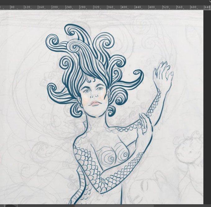 午後から副反応で熱出たけれど、夕方には微熱に。海中を描いて、まったり過ごす 明日は、胸あたりとうろこをもう少し #デジタル #水彩画 #スケッチ #ラフ #イラスト #イラストレーション #人魚 #watercolor #sketch #doddle #illustration #illust #marmeid