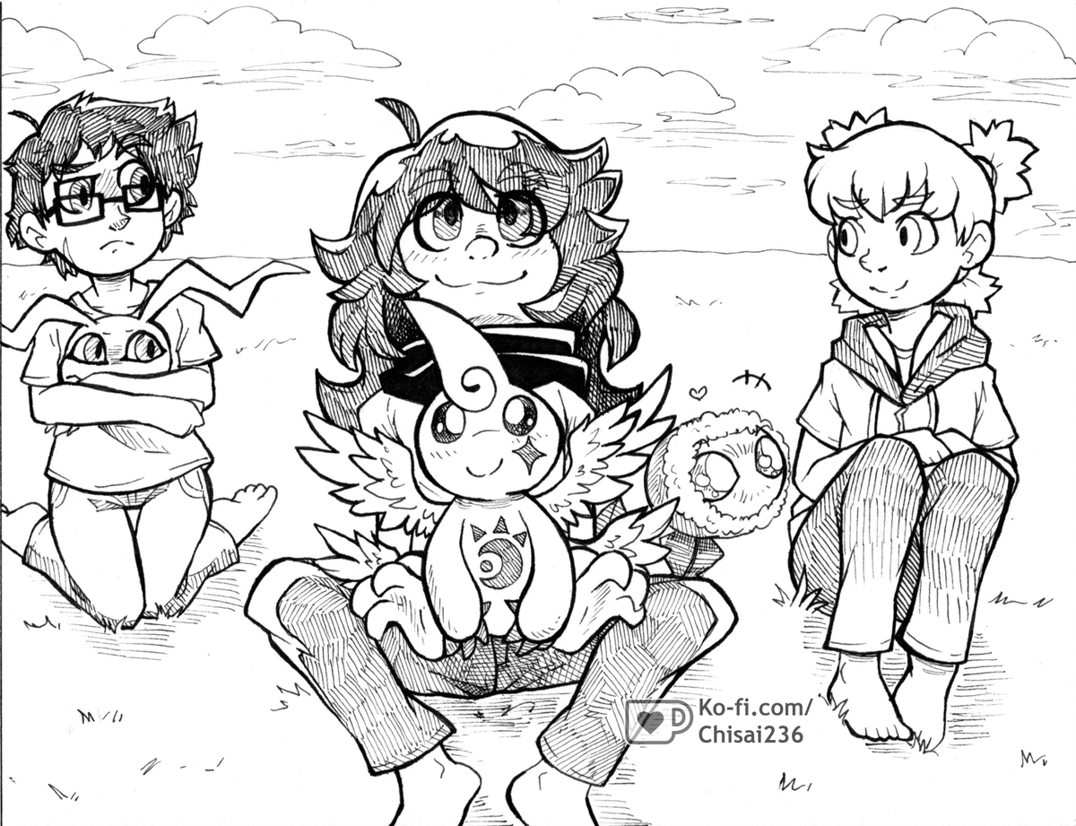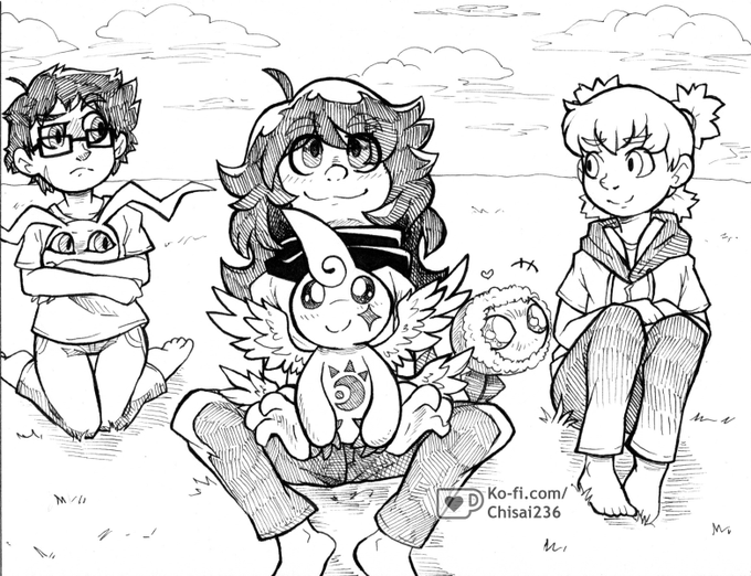Another wonderful commission for @FrostMrajick of his favorite three digimon playing together 😄 Thank you for another wonderfully wholesome commission, and I hope that you've been feeling a bit better too! #Digimon #digimonfanart #offmon #gammamon #monodramon
