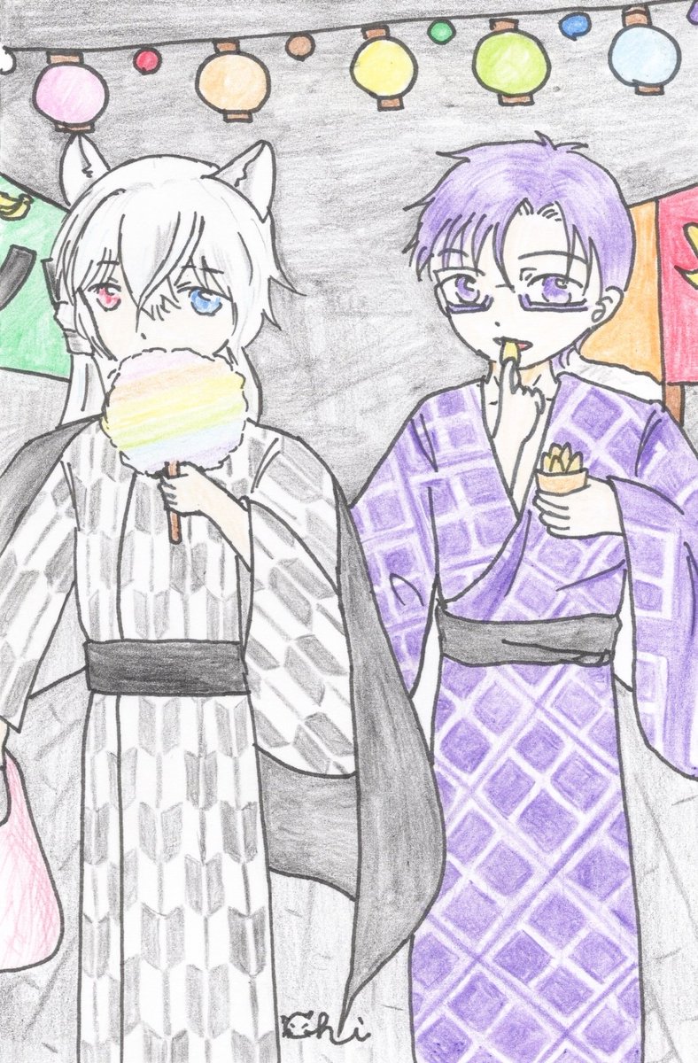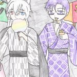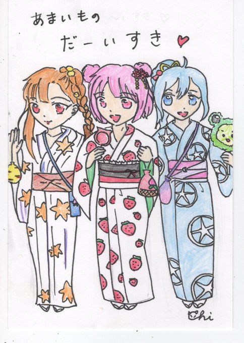 #今月描いた絵を晒そう ということで、浴衣勢ぞろいを載せたかったからでしたー。アナログなので合成できないので🤣 しかし思いつき感が半端ないなぁ😆 今度はもう少し考えて描こう(本当か?) #からぴち