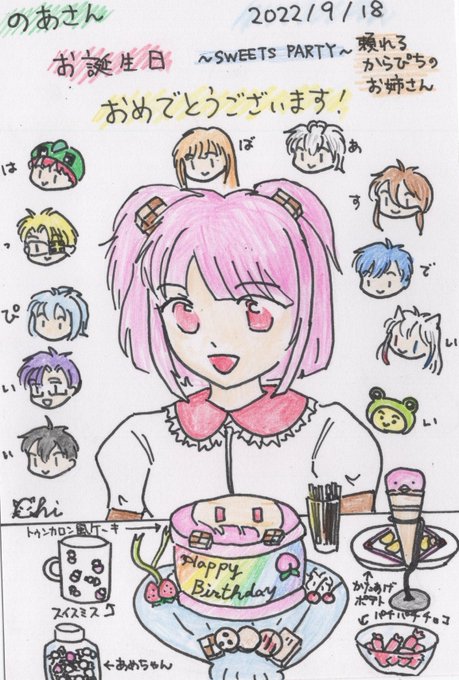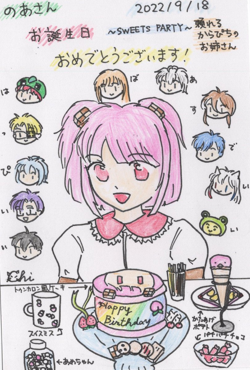 のあさん、お誕生日おめでとうございます💕いつも見守ってくださってありがとうございます✨ お菓子たくさんでお祝いです🥰 今日の肝試しも頑張ってください! これからも応援しています。 今回はしまむらさんのアクスタ買えましたよ〜。良かった〜。 #からぴち #のあさん誕生祭2022 #のあさん