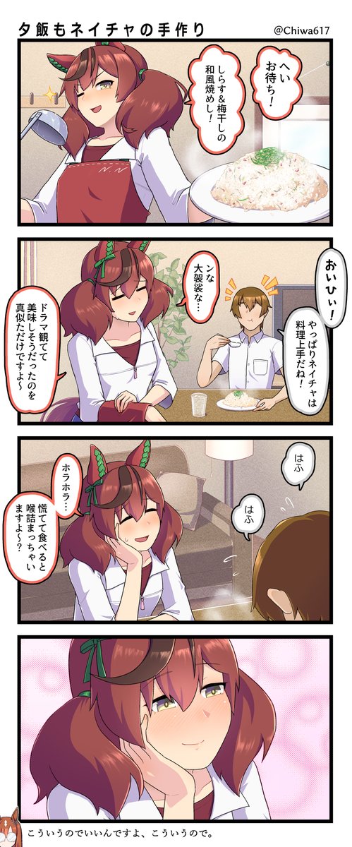 2127 11.7K 焼き飯食べてるトレーナーをじっと見つめるネイチャをジッと見つめるだけの4コマ #ウマ娘 23/07/08 07:34