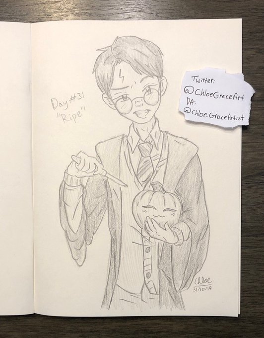 HAPPY HALLOWEEN~~~!!! 🎃👻 *whispers* There's small pumpkin, is that enough to qualify for #ripe? 🤫🤭 Also, Chen was the cutest Harry Potter for Halloween one year. 🥰❤️😘 #Inktober #Inktober2019 #InktoberDay31 #EXO #MAMAVOTE @weareoneEXO