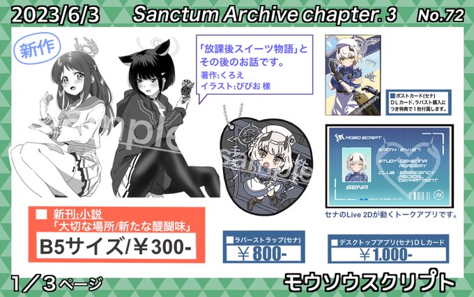 2023年4月16日に京都市勧業館みやこめっせで開催予定のイベント「サンライズクリエイション京都2023春」に「モウソウスクリプト」で申し込みました。 的場合同の頒布予定です。合同誌に合わせアオイさんのグッズやゲーム等を頒布予定です。 よろしくお願いします。 #モウソウスクリプト #的場合同