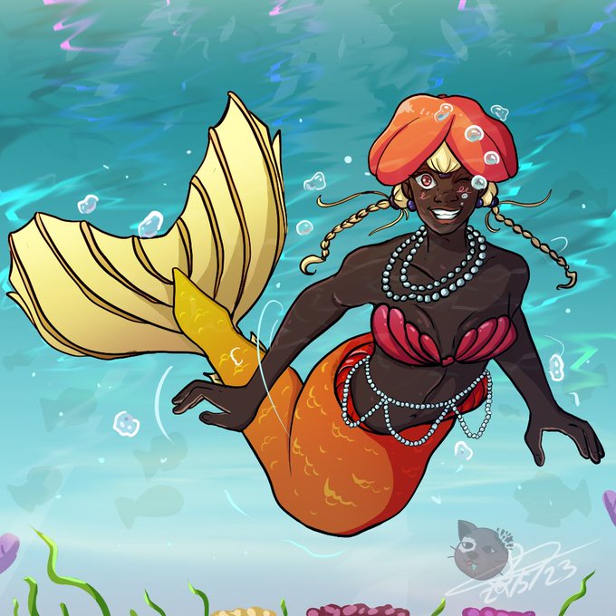 Ackee Inspired Mermaid for #mermay2023 #mermay23 I played around with the background. I had so much fun with this drawing.