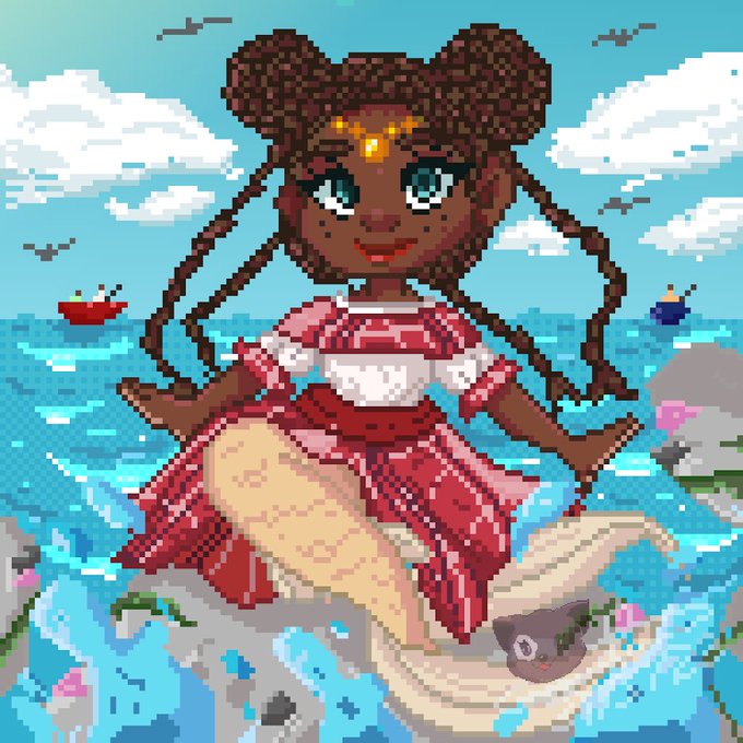 Jamaican mermaid 🙈✨ (River Muma) Early Access on Patreon and Ko-fi. Sketches also available on those platforms and stickers for members of my patreon. #jamaica #blackcharacters #blackart #anime #mermay #mermaid #artist #digitalpainting #animation