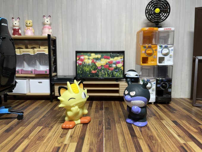 2 55 なにかを企むニャースとバイキンマン。 #ソフビ #オモ写 23/07/04 21:40