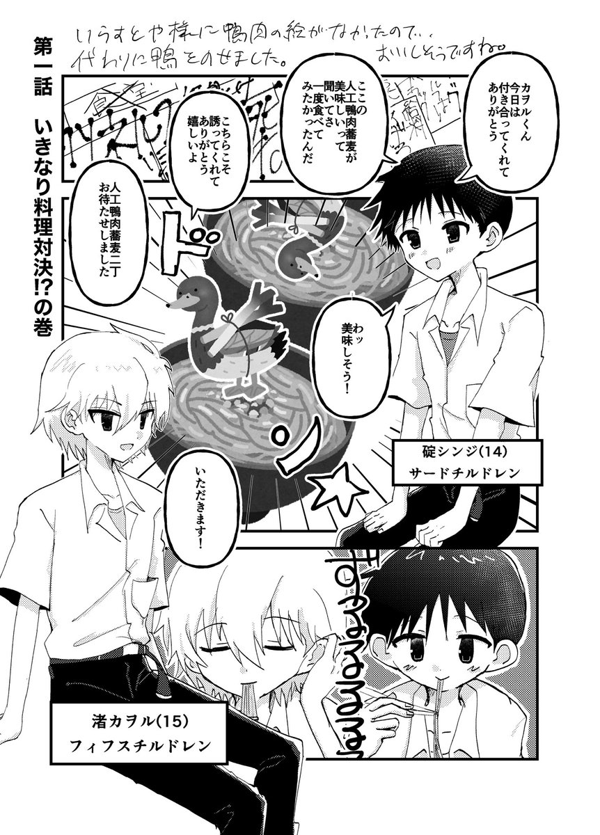 君との連弾22、F33にて配布予定 新刊サンプルです(1/3) 冬月とシンジが料理対決するだけの本です カヲルより冬月のが出てきます(え?)