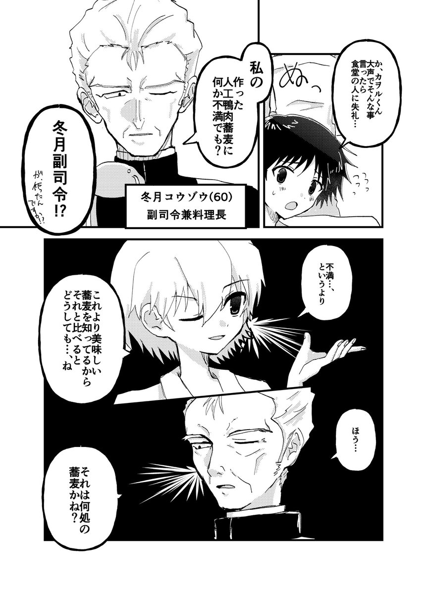 15 59 君との連弾22、F33にて配布予定 新刊サンプルです(1/3) 冬月とシンジが料理対決するだけの本です カヲルより冬月のが出てきます(え?) 23/02/01 02:36