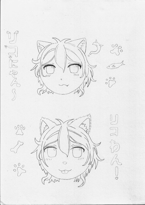 「リコにゃん~」と「リコわん!」のスケッチ。 いつものように、まだスケッチです。 #ビビットアーミー #ビビットアーミーのリコ #絵描きさんと繫がりたい #絵描きさんとつながりたい #絵描きさんと仲良くなりたい #練習中