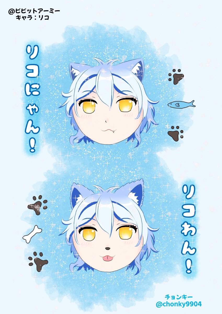 「リコにゃん」と「リコわん」 #ビビットアーミー #リコ #にゃんとわんバージョン #猫と犬バージョン #練習中 #絵描きさんと繫がりたい #絵描きさんとつながりたい #絵描きさんと仲良くなりたい