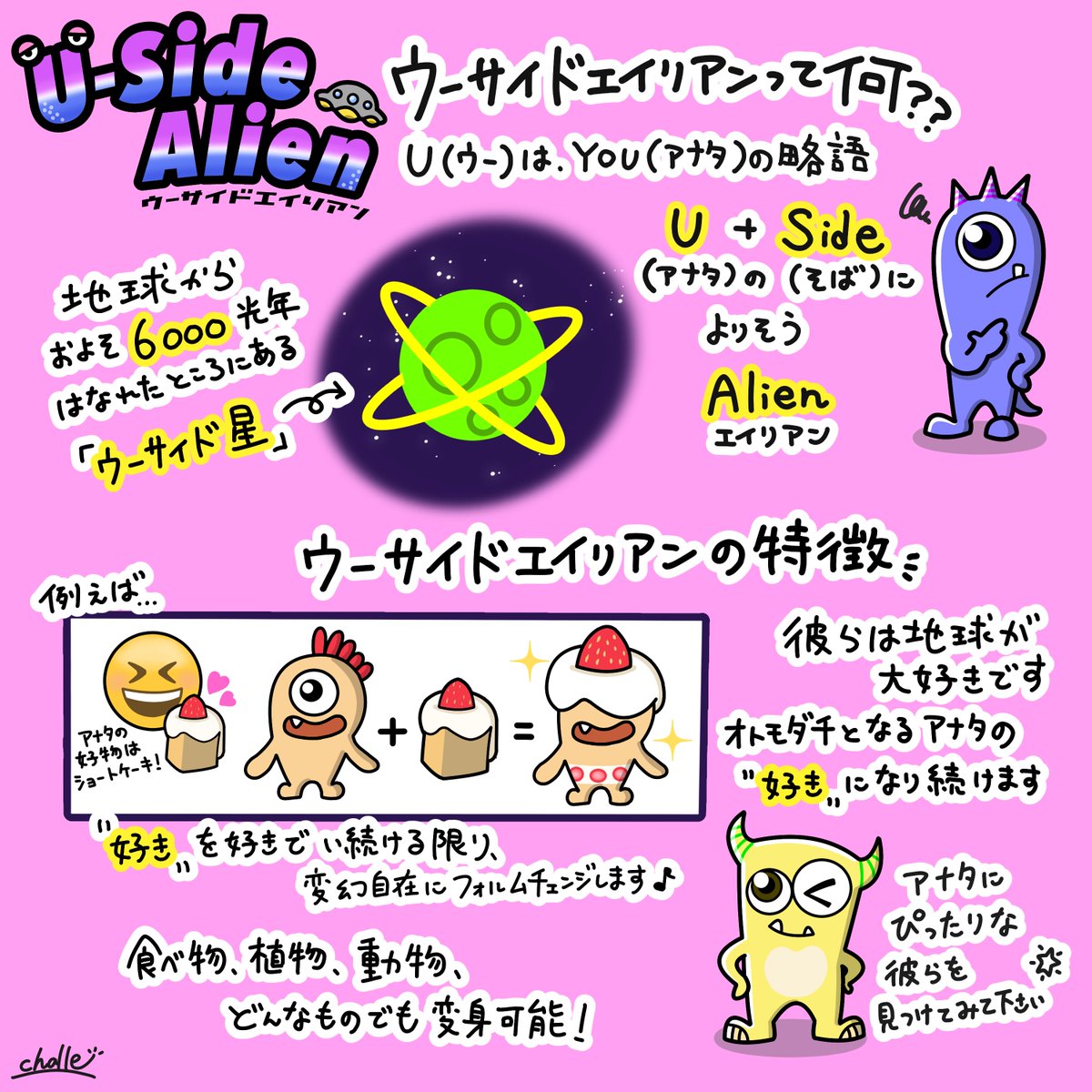 【ご報告1】 この度、宇宙探査の末、 新発見地球外生物 「U-Side Alien」 (ウーサイドエイリアン) をNFTで発表致します🌟 まず初めに仲良くなってくれた 7体の彼らを初mint🚀しました! opensea.io/Chqlle 是非、オトモダチとして お迎えしてみてください! #NFT #NFTJapan #NFTart
