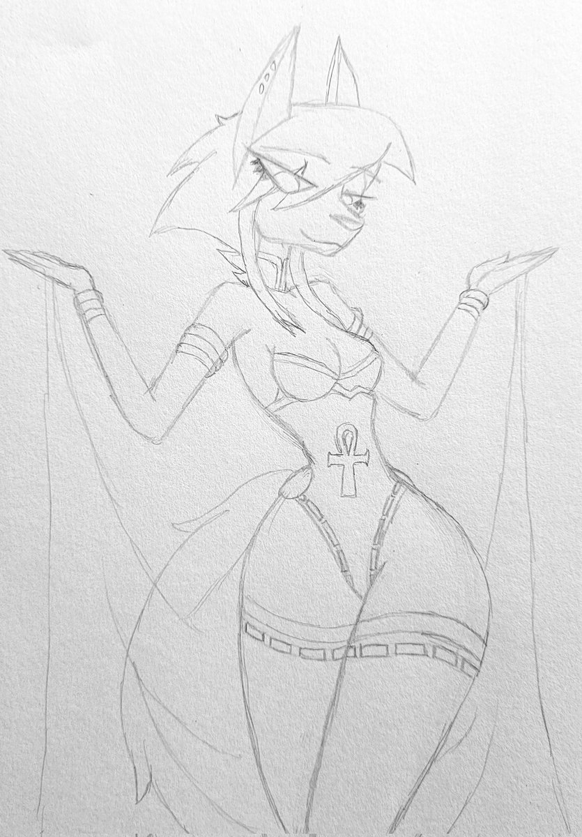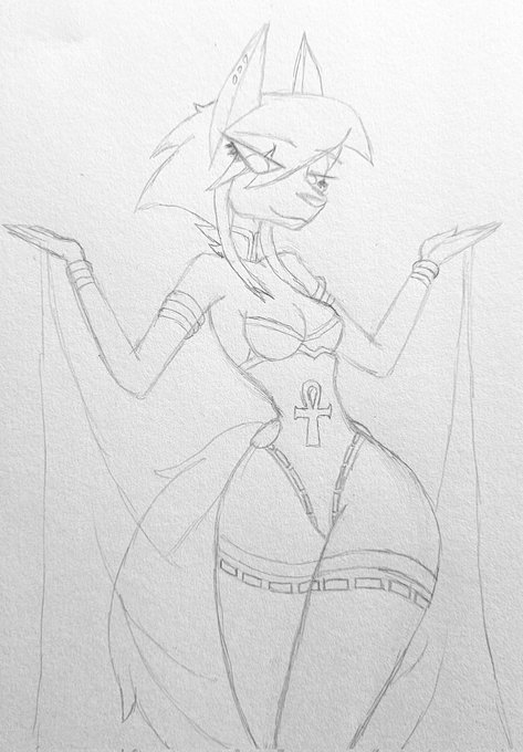 Inspired by @pakwan008's (yet-to-be public SFW version) illustration, Shani is showing off some of her Egyptian style #HelluvaBossOC #HazbinHotelOC #furryart #traditionalart #OC
