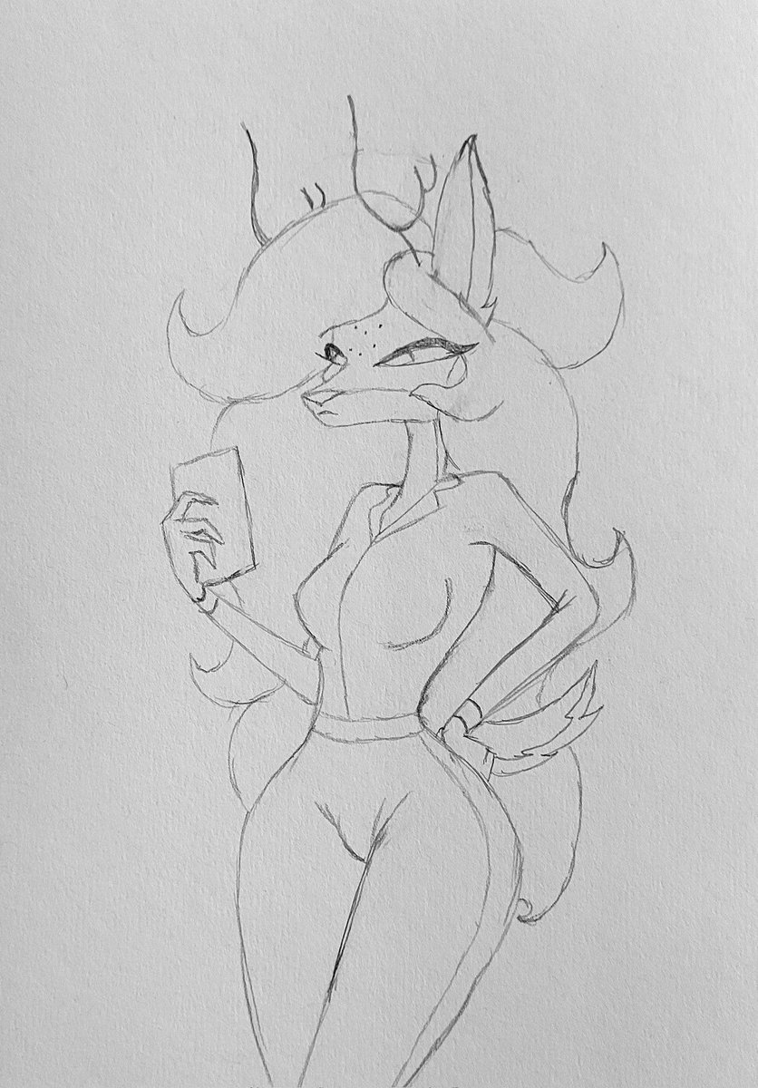 Thank you to @HhbSoul for this adopt, my first deer character I think I'm going to have her become Cyssi's rival and Josephine's ward She's also going to have a running gag of being hit by vehicles #HelluvaBossOC #HazbinHotelOC #furryart #digitalart #OC #adopt