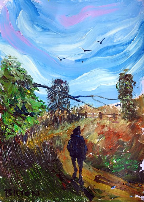 3 17 #hicking #walking #strolling #neveradullday #ephemerallandscape #paintingoutside #pleinairpainting #redhat #landscapepainting #acrylicpaintings #southyorkshire #biltonart #opencountry #trees #artfulliving #allaprima #impastopainting #Halcyondays #clarifiedimpressionism 23/04/21 13:23