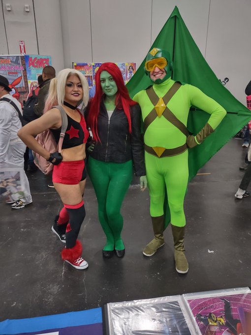 #HarleyQuinn #PoisonIvy and #KiteMan at #NYCC2022. #Cosplay #NYCC