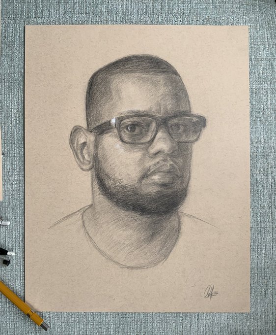 Decided to do self portrait since I haven’t done one in a while. Filmed it and ill be posting the video sometime tomorrow. Graphite and chalk on toned paper 2022 #art #ArtistOnTwitter