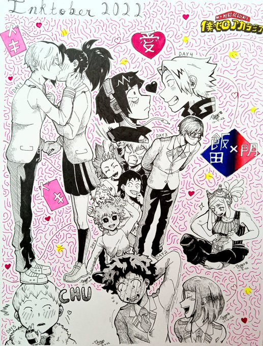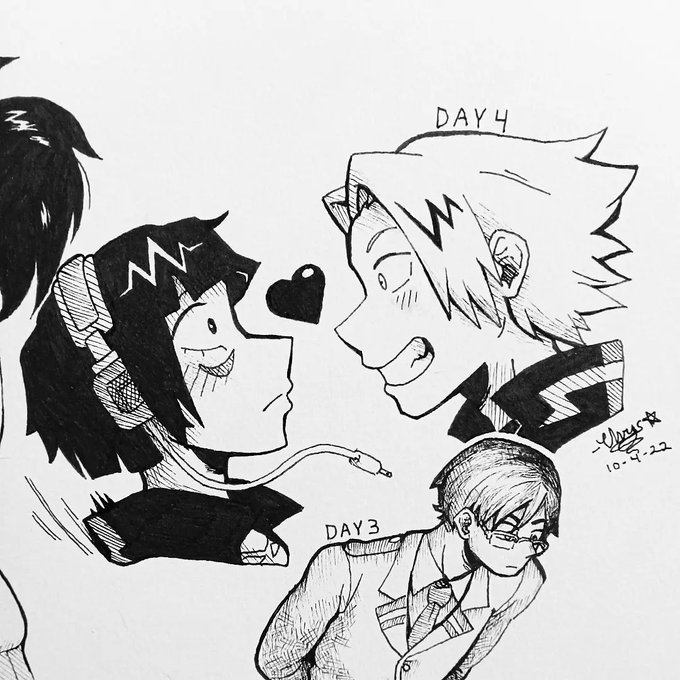 Inktober Days 1-6 I added details to the full page! ❤️ I'm sorta counting this as day 7, so I'm gonna take a break today. . #inktober2022 #myheroacademia