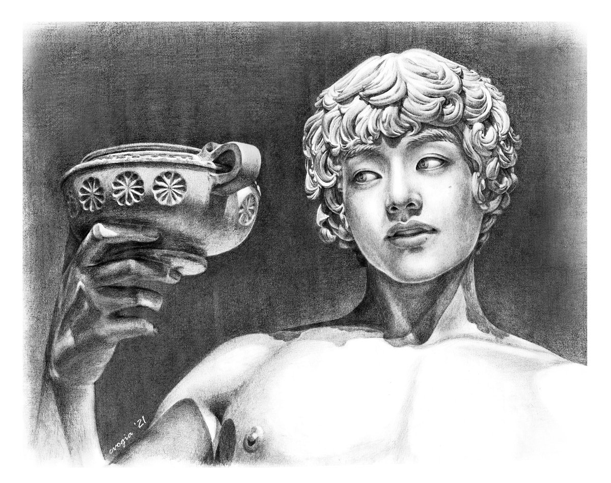 Statue drawing of our beautiful Taehyung as Dionysus [watch this flop] #btsfanart #KimTaehyung @BTS_twt