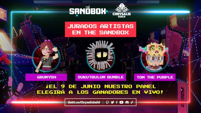 🕹️CONCURSO #CHRYSALISARCADE 🕹️ ¡Demuestra tu conocimiento en #VoxelArt y #VoxEdit ! Estos jurados seleccionaran los 3 ganadores: 🔸@Grumysh 🔸@Sukutrulum 🔸@Tom_the_purple Animate a participar y gana $SAND ! ⬇️ bit.ly/voxel2022 @TheSandboxES #VoxEditWeekly