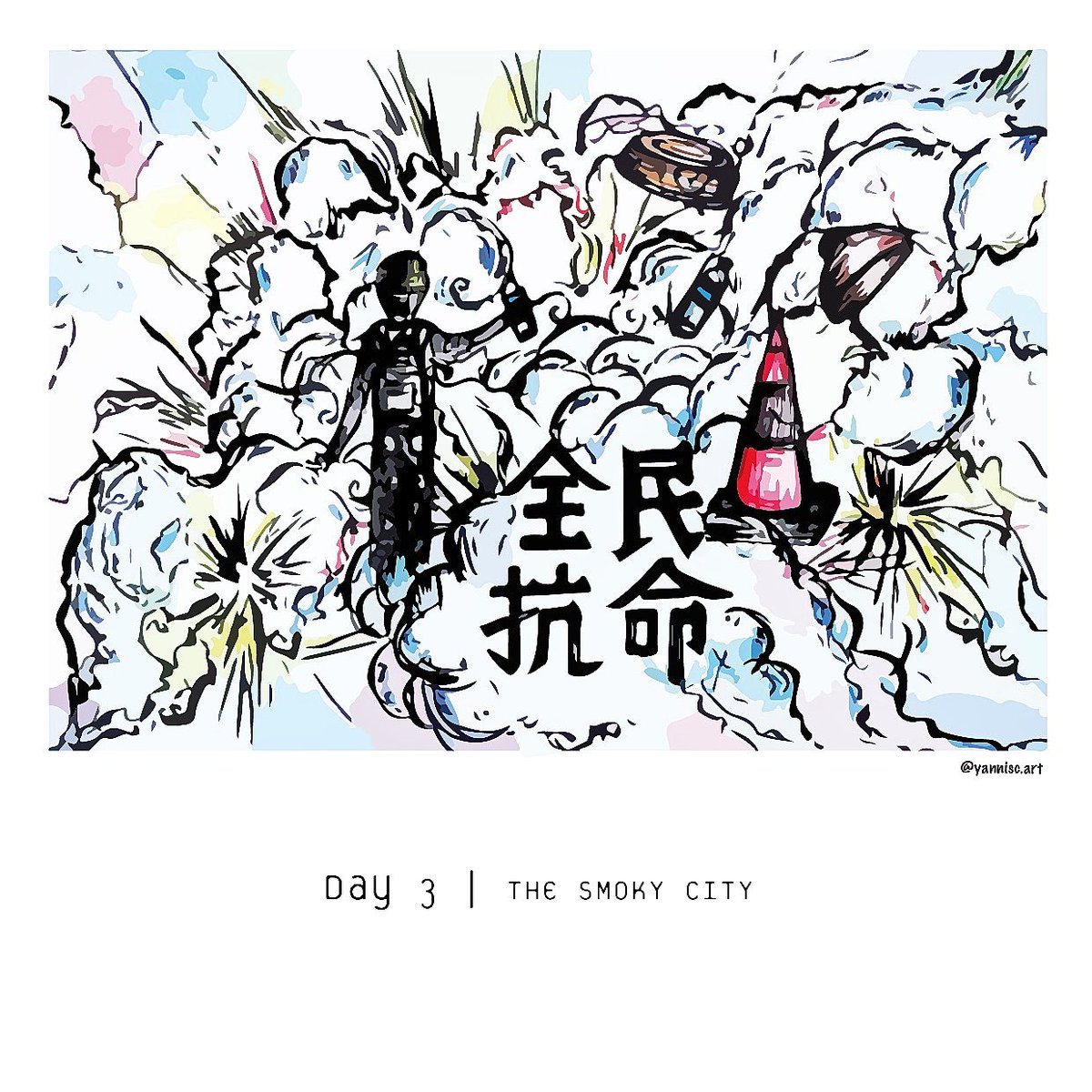 Day 3 | 煙霧之城 The Smoky City 10.3 #freetoberhk2019 #FreetoberHK #Inktober2019 #inktober #StandWithHongKong