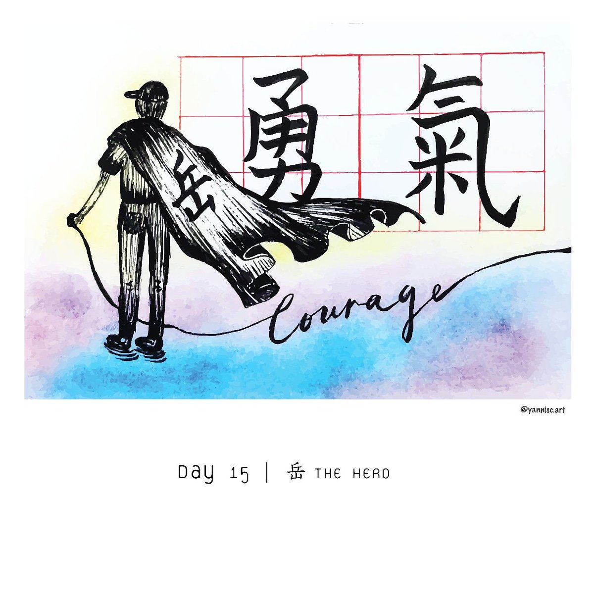 Day 15 | “岳” The Hero 10.15 Courage #Freetoberhk2019 #inktober #inktober2019 #drawing #fightforfreedom #standwithhk