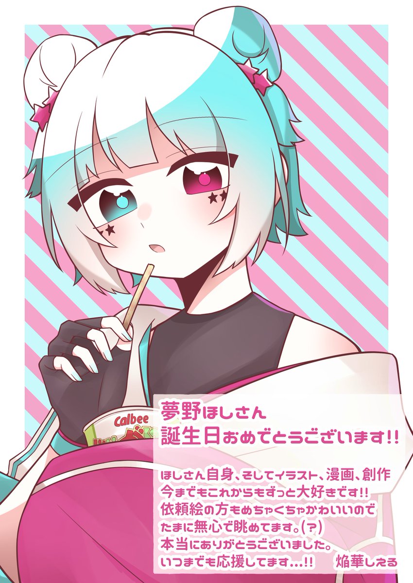 ほしさんへ ໒꒱ ̖́- お誕生日おめでとうございますー!! 代理ちゃんをどこかで描こうと思いながら1ヶ月、2ヶ月と引き摺りに引き摺ってここしかないと思い猛スピードで描きました... 本当に本当にいつもありがとうございます、これからも応援してます⸜❤︎⸝