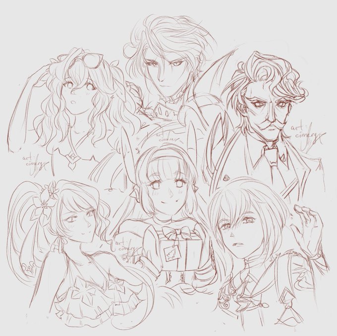 Aaaand here’s all the doodles compiled. Charles looks one line weight heavier than everyone else because I started him on a larger brush 😂 #E7Art#epicseven#epic7