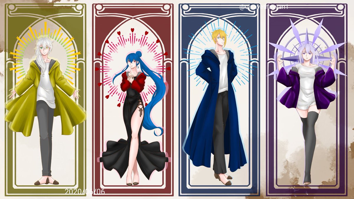 #お盆休みはフォロワーさんが増えるらしい #オリキャラ愛の創作クラスタさんと繋がりたい #夏の創作クラスタフォロー祭り 相互希望です。 神話×現代の世界観でだいたい1.2枚目の8人をよく描きます。作業の為低浮上になりやすいですが仲良くしてくれたら嬉しいです!☺ 3.4枚目は新作です!