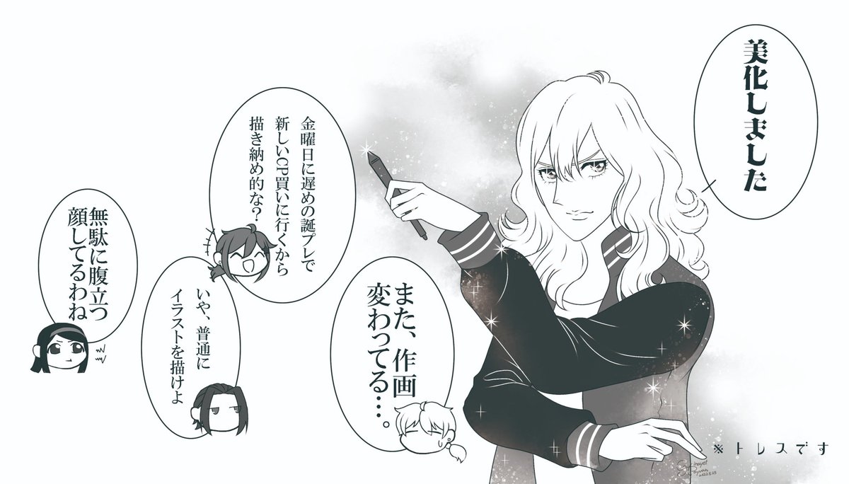 #新年早々の創作クラスタフォロー祭り #フォロワー1000以下の一次創作作家発掘フェス 1枚目は今年の絵 アナログとデジタルを極めたい(願望←) キラキラした感じの絵を描くのが好きです。 今年の目標でイラストと創作(現代創作神話×転生)の漫画を、2枚目のキャラ達中心に制作中してます_( _'ω')_