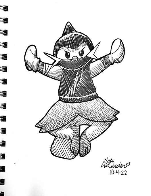Inktober 2022 [Day 19]: Ponytail Hydoor from Live a Hero. He’s got a nice little ponytail and is happily showing it off #Inktober #Inktober2022