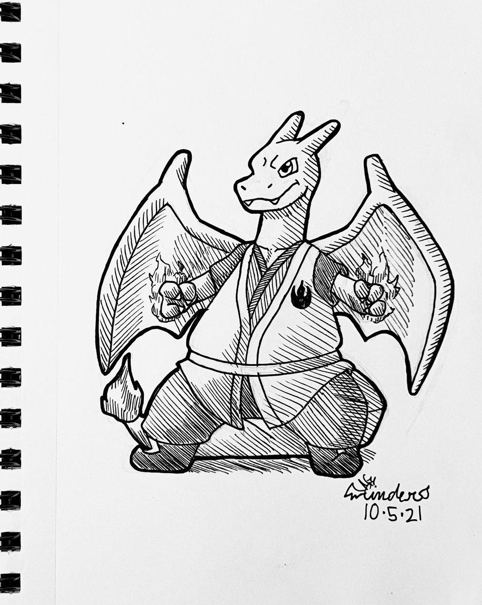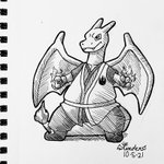 Inktober 2022 [Day 5]: Flame Have a Charizard dressed in a fire nation outfit from Avatar the last Airbender #Inktober #Inktober2022