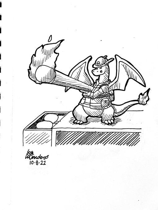 Inktober 2022 [Day 8]: Match Charizard the perfect firefighter wielding a huge lit matchstick #Inktober #Inktober2022