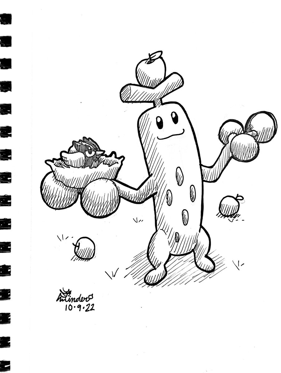 Inktober 2022 [Day 9]: Nest A Sudowoodo disguised as an apple tree and a Rookidee’s nest really helps make it more convincing as an actual tree #Inktober #Inktober2022