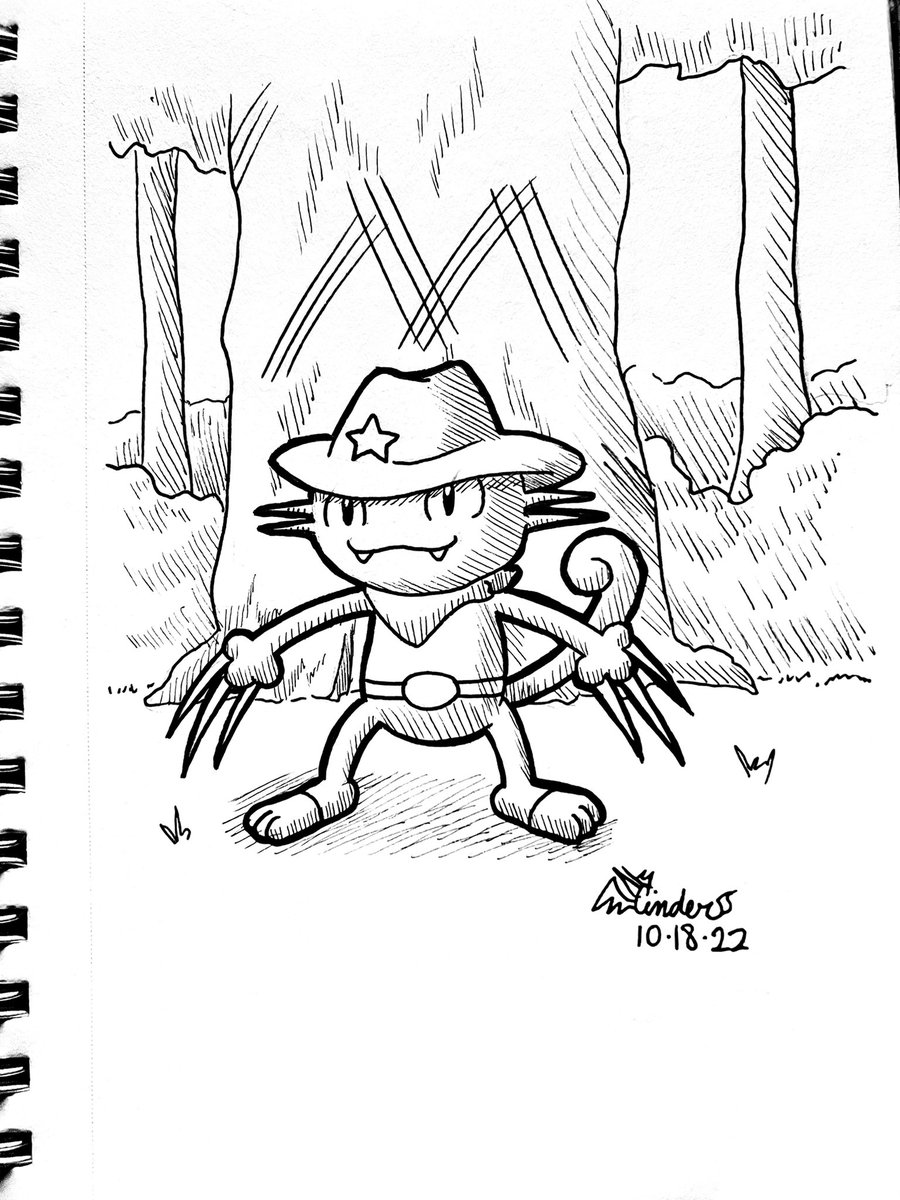 Inktober 2022 [Day 18]: Scrape Cowboy Meowth scrapping thickest tree as he grows stronger and tougher with his claws out in the wild #Inktober #Inktober2022
