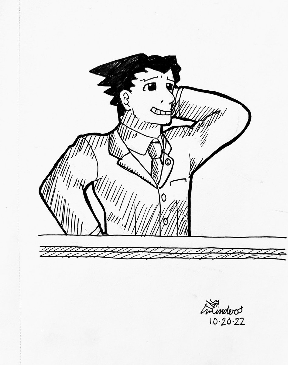 Inktober 2022 [Day 20]: Bluff Phoenix Wright is good at bluffing for a defense attorney but he does eventually reveal the truth behind a case #Inktober #Inktober2022