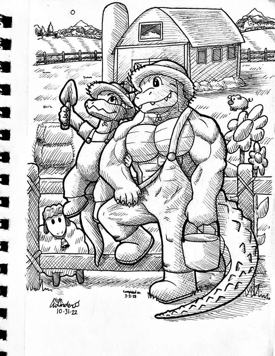 Inktober 2022 [Day 31]: Farm Two farm-er friends on a farm E-I-E-I-O. Allister and Daryl are helping out around the farm in the peaceful countryside learning to harvest and taking care of the barn animals. #Inktober #Inktober2022